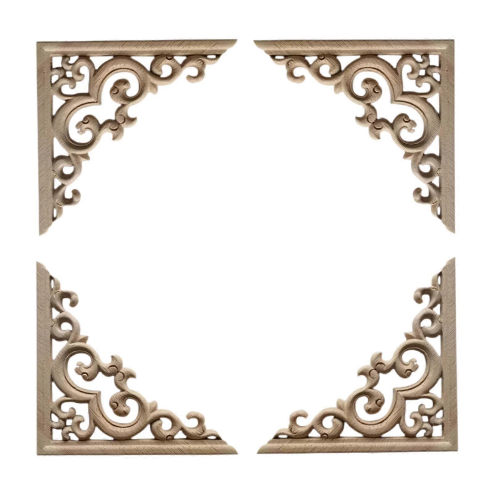 4Pcs Unpainted Frame Cupboard Wardrobe Decal, DIY Carved Corner Onlay Appliques
