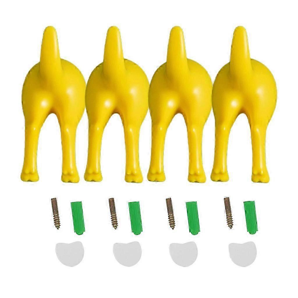4Pcs Nordic Plastic Dog Tail Hooks Wall Mounted Coat Hat for Key Hanger Decorati Yellow