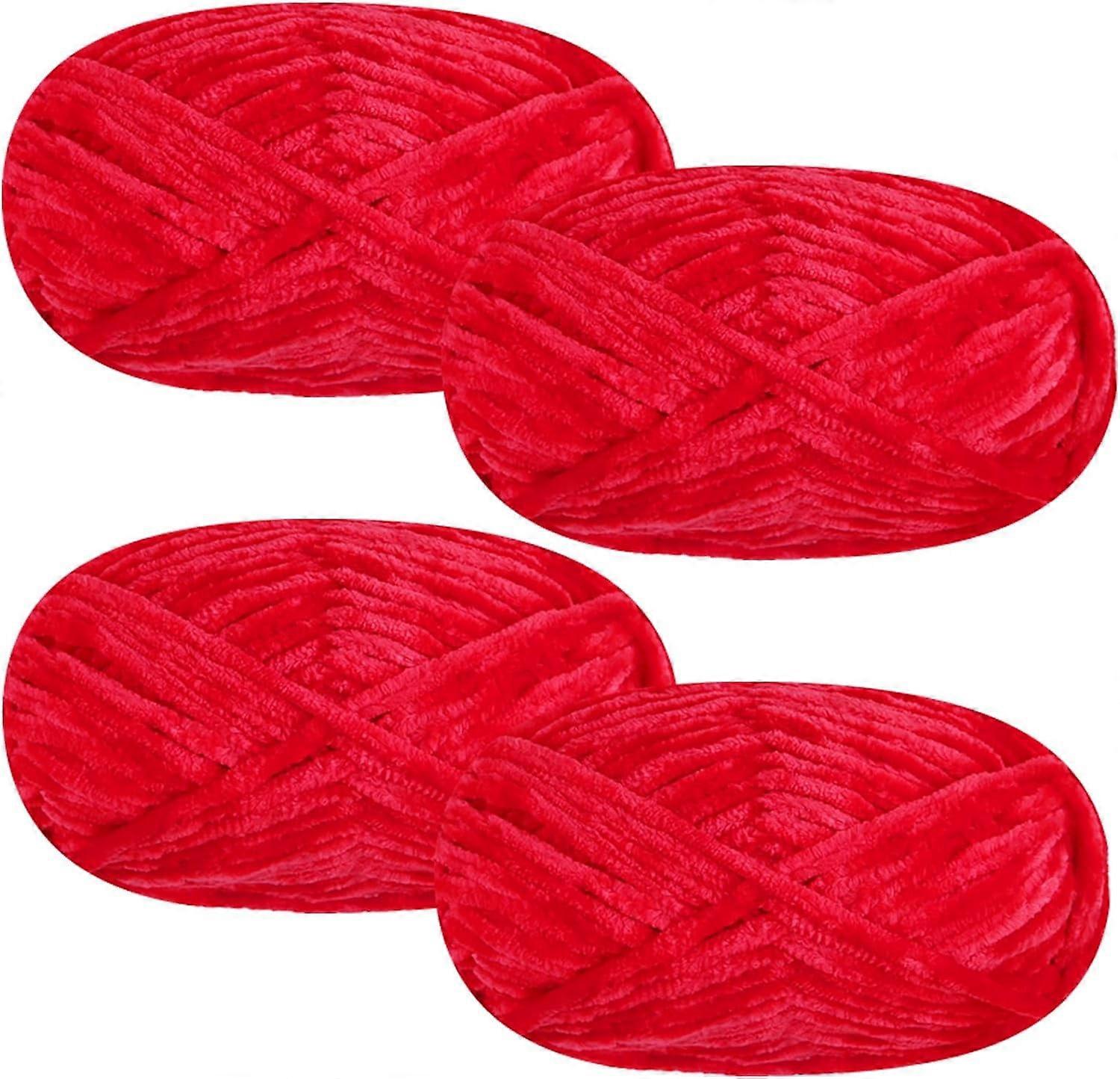 4PCS/400g Soft Chenille Yarn for Crocheting & Knitting - Velvet Fluffy Yarn for Blanket, Hat, Scarf, Gloves, Slippers, Doll & DIY Crafts
