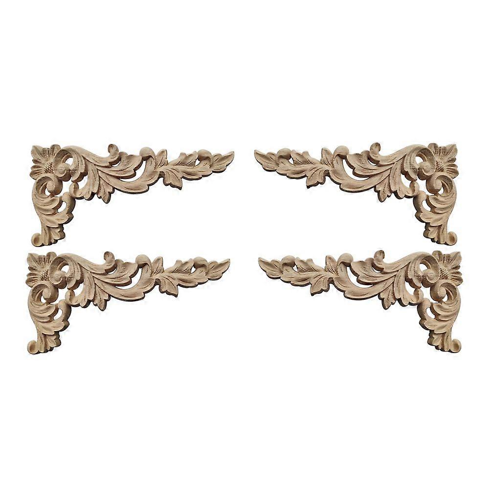 4Pcs/Set Wood Carved Corner Onlay Applique Unpainted Frame Cupboard Cabinet Decal for Decoration B