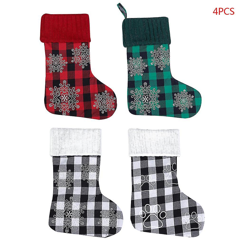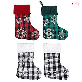 4pcs/set Christmas Stocking Footprint Snowflake Lattice Gift Candy Bag Hanging Xmas Tree Fireplace Decoration