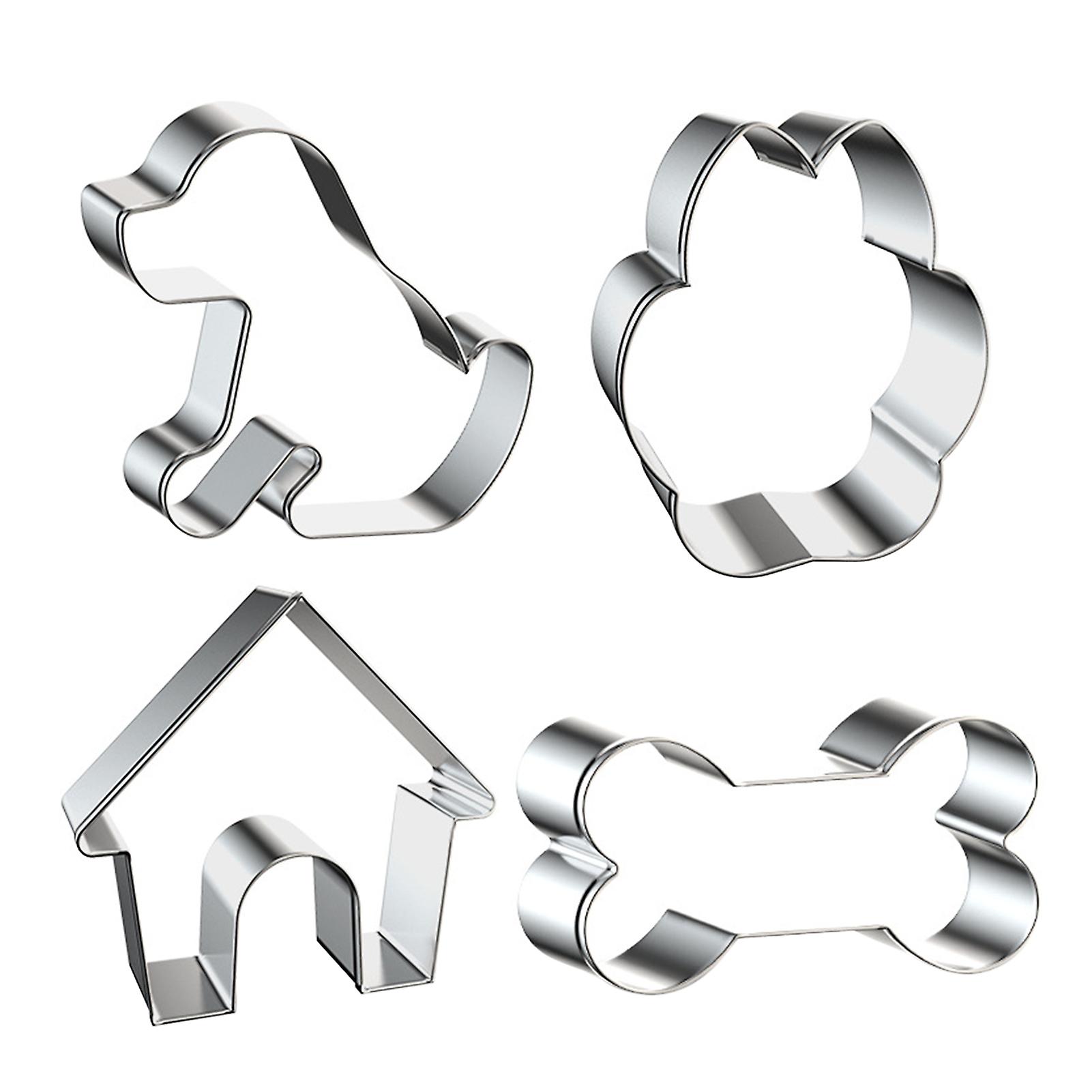 4Pcs/Set Cookie Cutter Dog House Paw Bone Shape Easy Release Food Grade Stainless Steel Press Biscuit Cutting Mold Kit Kitchen Baking Tools