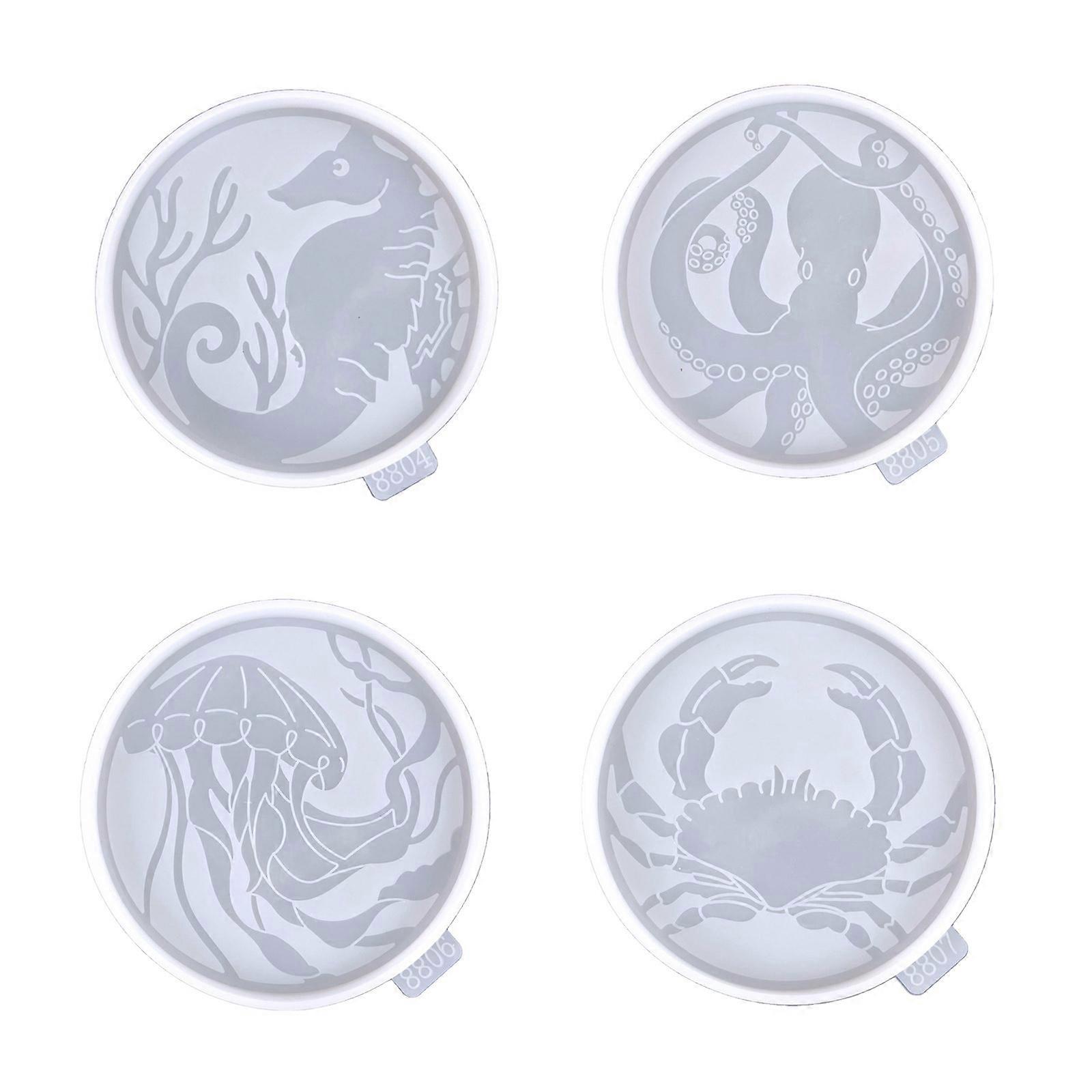 4x Coaster Silicone Molds for Epoxy Resin Octopus Crab Texture Threads Silicone Cup Mat Molds Handmade Gift Ornament Clear
