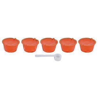 5Τμχ 50ml Κάψουλα Καφέ Επαναχρησιμοποιήσιμο Φλιτζάνι Φίλτρου Καφέ με Κουτάλι για Μηχανή Καφέ DOLCE GUSTOπορτοκαλί