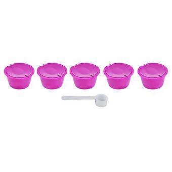 5Τμχ 50ml Κάψουλα Καφέ Επαναχρησιμοποιήσιμο Φλιτζάνι Φίλτρου Καφέ με Κουτάλι για Μηχανή Καφέ DOLCE GUSTORose Red