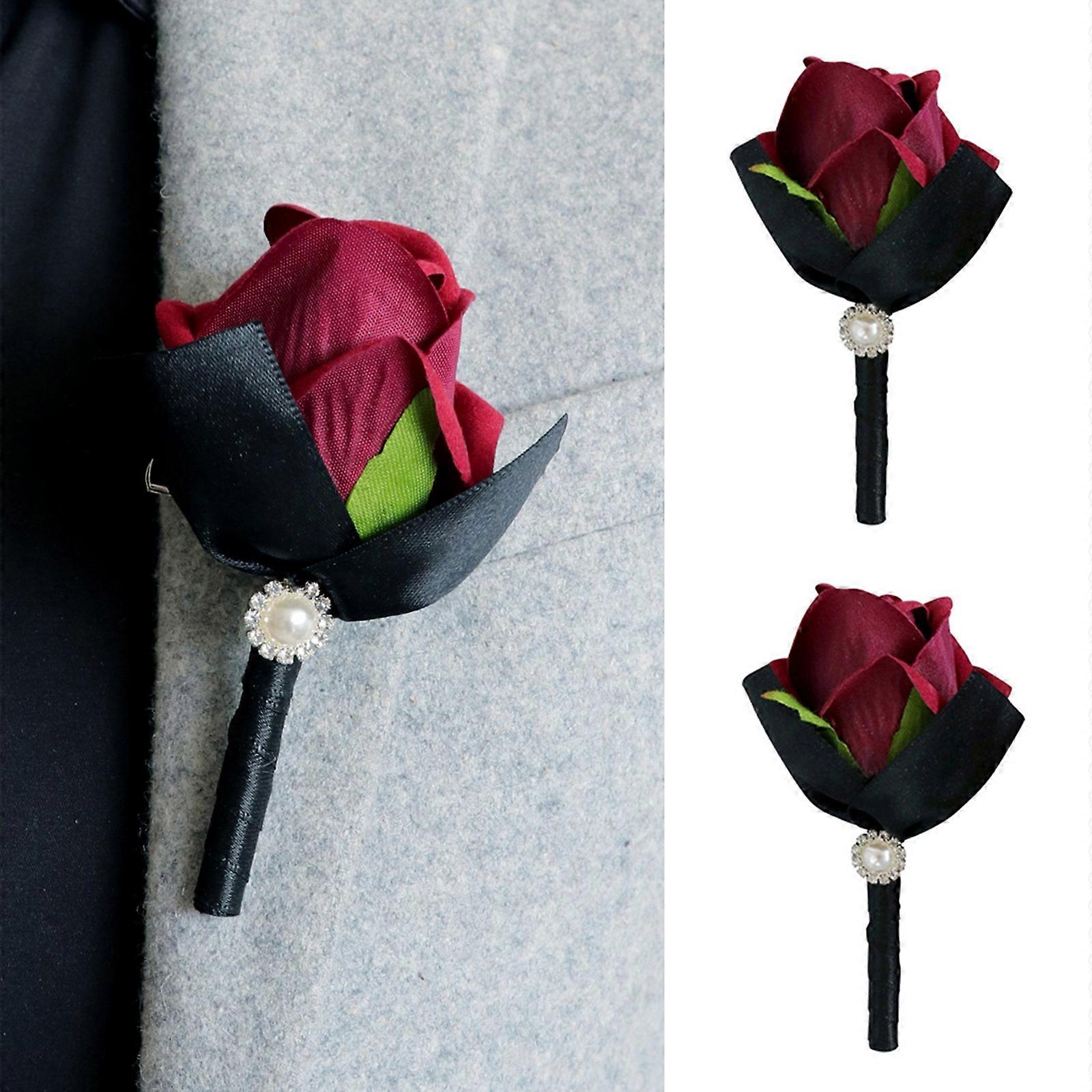5Pcs Rose Boutonniere, Rose Wrist Corsages with Bowknot for Wedding Banquet Ceremony, Rose Corsages for Bride and Grooms