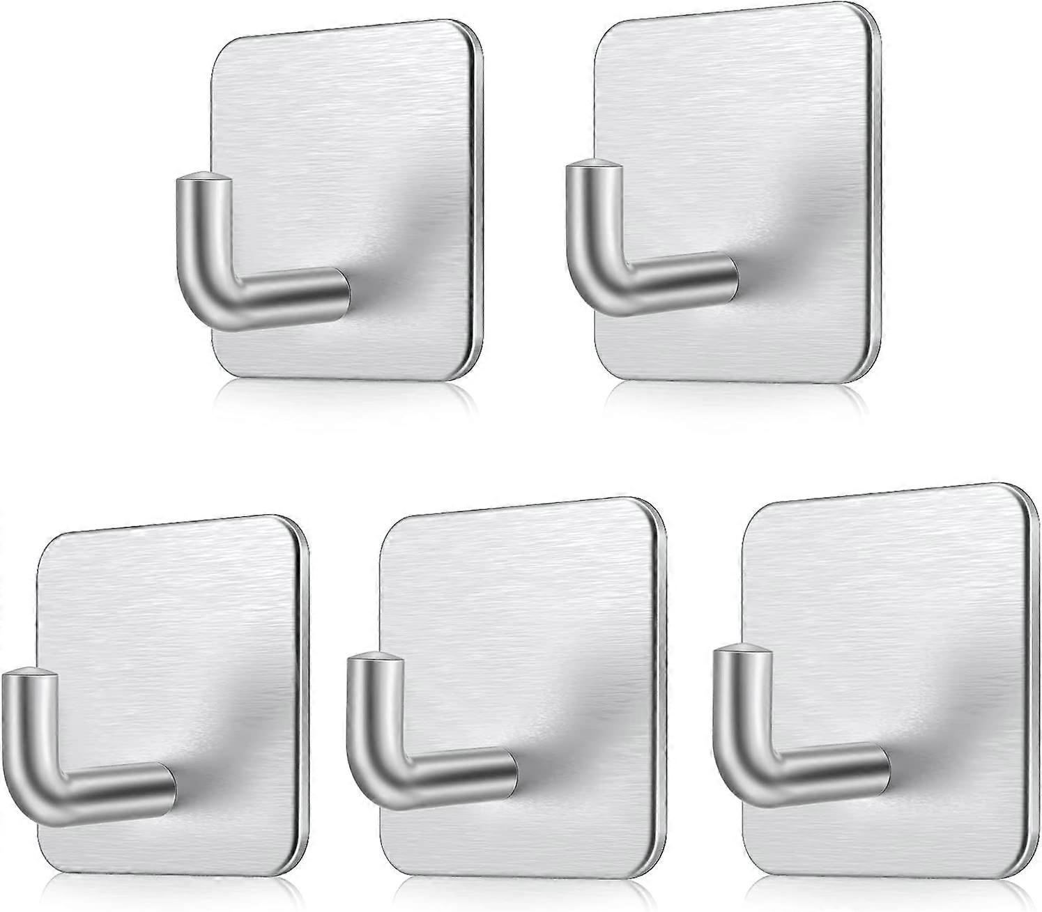 5 Pieces Adhesive Hook, Stainless Steel Wall Hook, Self-adhesive Waterproof No Drilling Towel Rack for Bathroom, Kitchen, Office etc. (U Shape)Silver