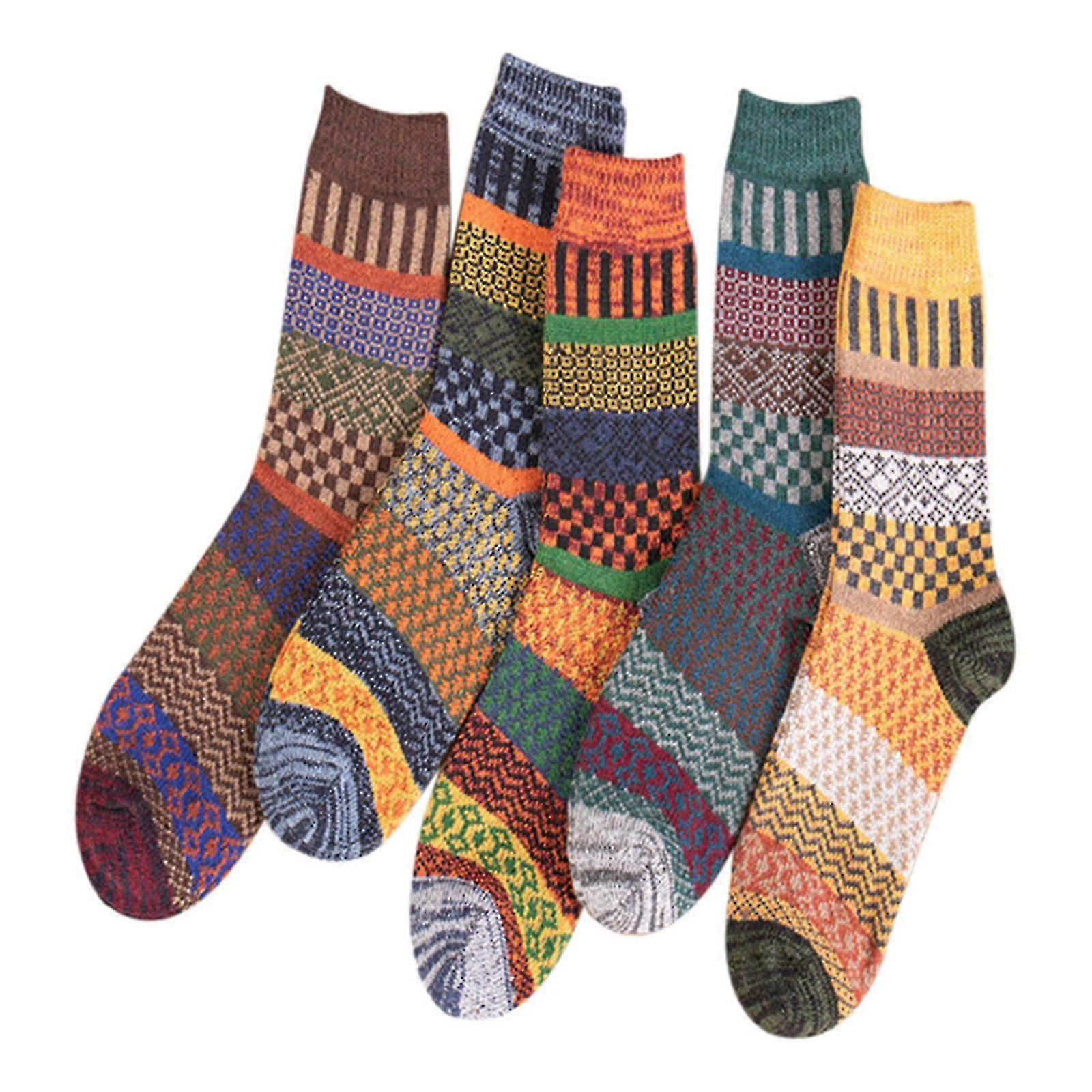 5 Pairs Autumn Winter Nordic Socks Thick Knitted Two-way Colorful Patten Crew Socks Men Women