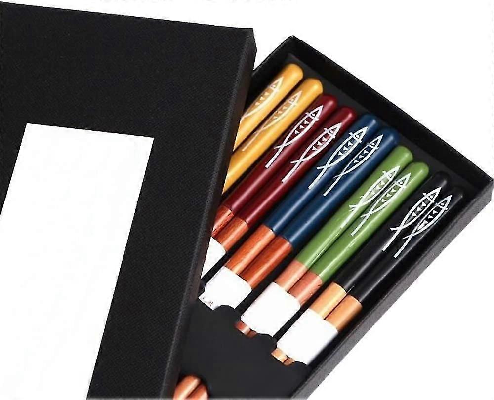5 Pairs Of Saury Fish Pattern Wooden Chopsticks