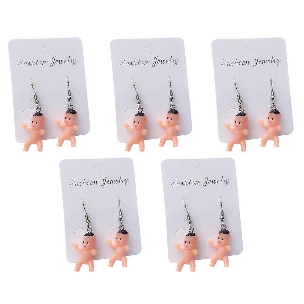 5 Pair Baby Pattern Eardrop Resin Pendant Dangler Doll Earrings (Random Color)