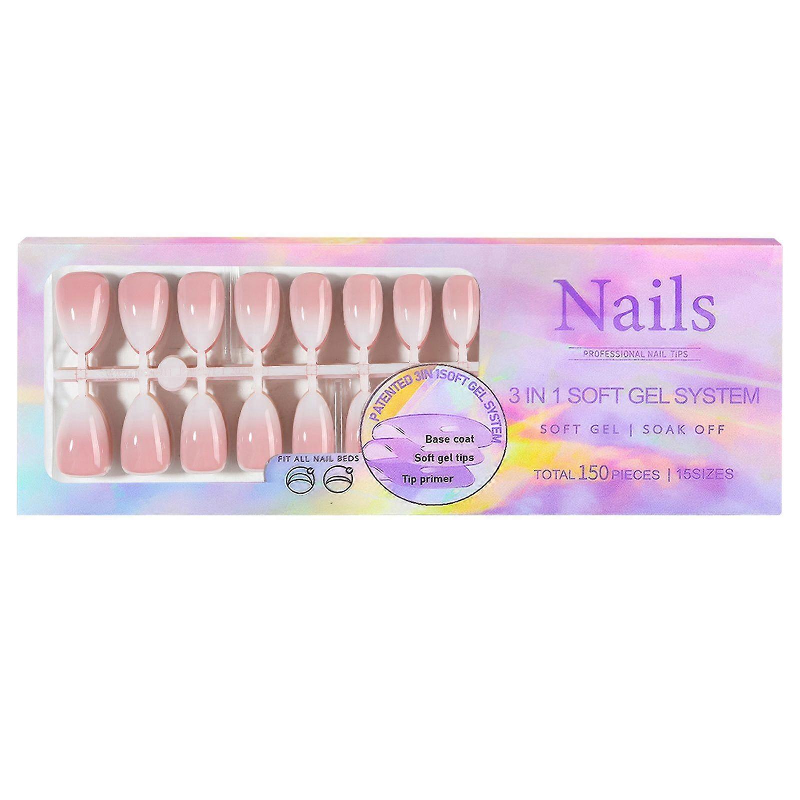 5 Gradient Colors Soft Gel Nail Tips Pre-applied Base Coat & Tip Primer Pre-made Fake Nails 15 Sizes False Nail Tips for Nail Art DIY