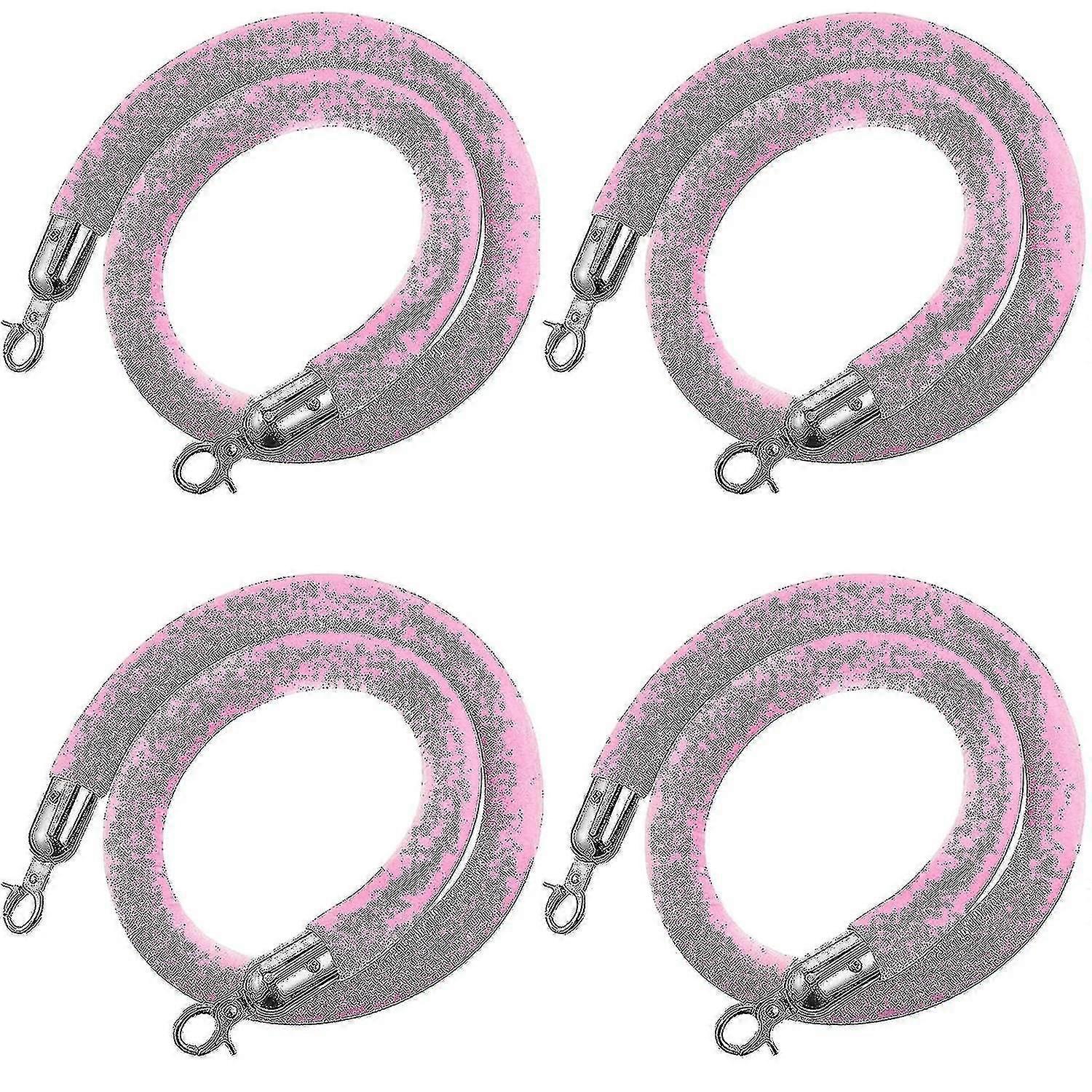 5 Ft Velvet Stanchion Ropes Pink, 4 Pack Crowd Control Rope Safety Queue Barrier With Silver Hook, Vip Rope Compatible Party Events Decor-g