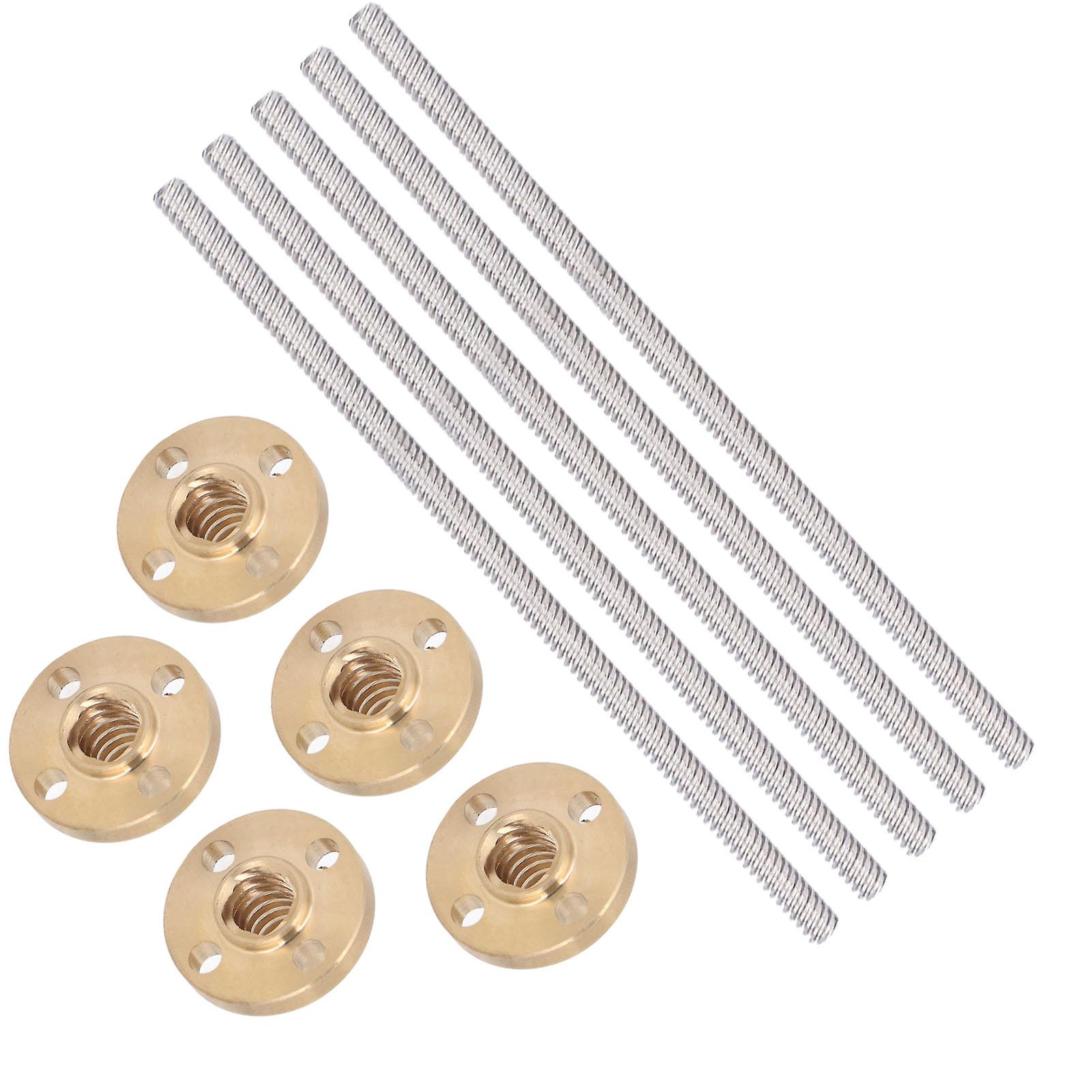 5 Set 3D Printer T8x8 Lead Screw Brass Nut High Strength Accurate Trapezoidal Lead Screw