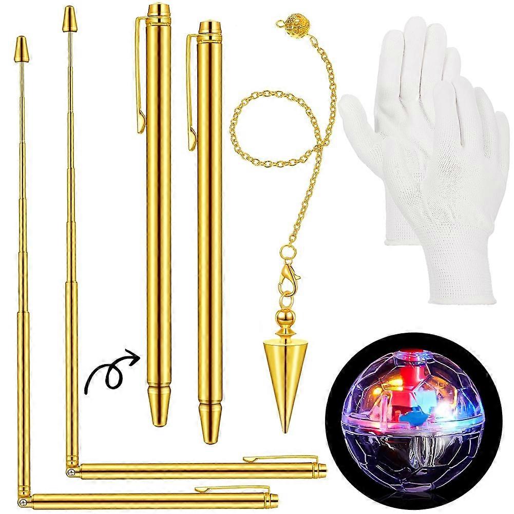 5pcs Equipment Copper Dowsing Rods Cone Probe Pendulum LED Light Cat Ball Gloves for Tools Divining Water Gold Treasure