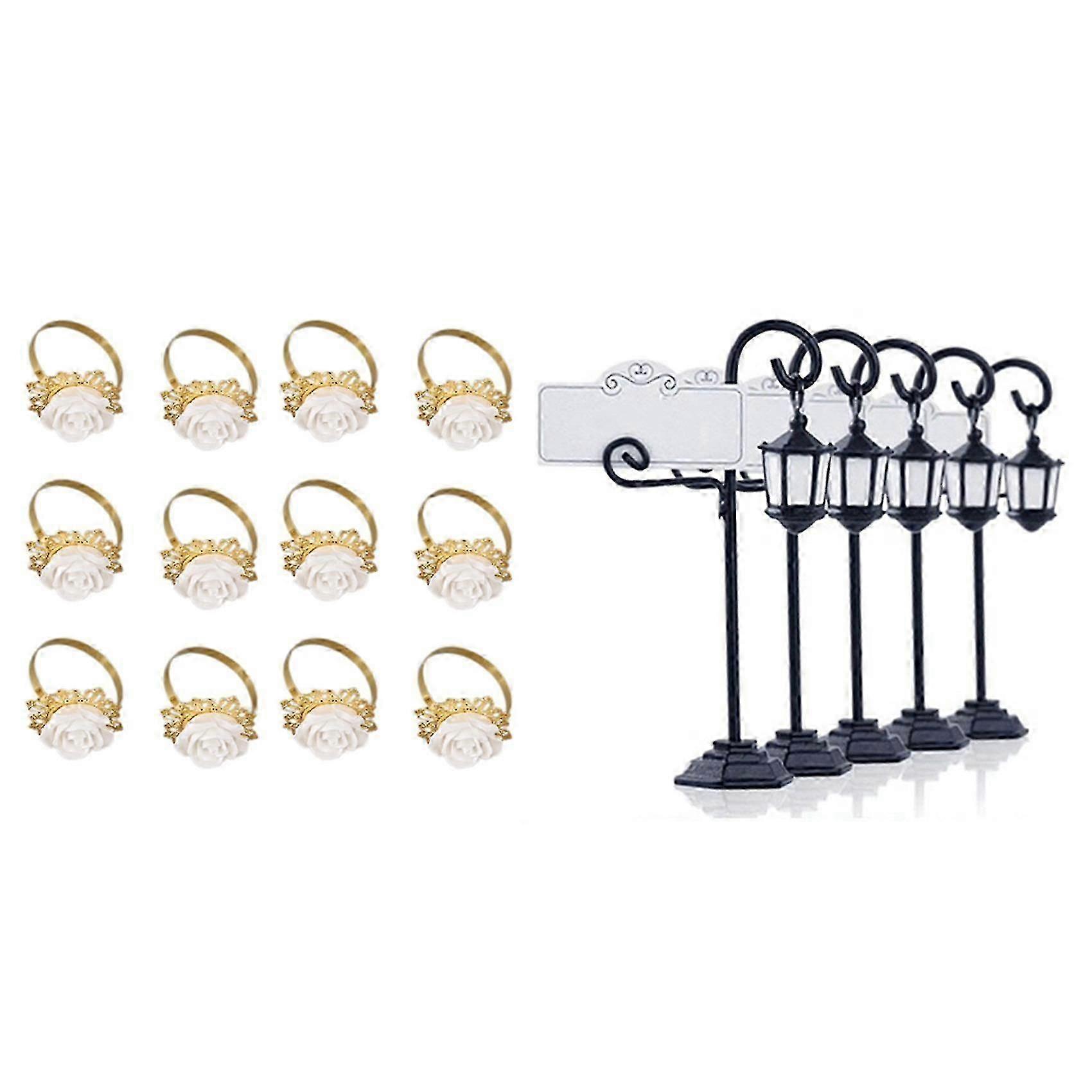 5 Pcs Streetlight Shape Wedding Party Place Card Holder With 12pcs Resin Napkin Ring Table Kitchen