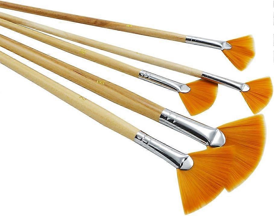 5 Pieces/Set, Fan Shaped Nylon Wool Short Wood Stick Brush Painting Painting Supplies (Natural Wood Color)