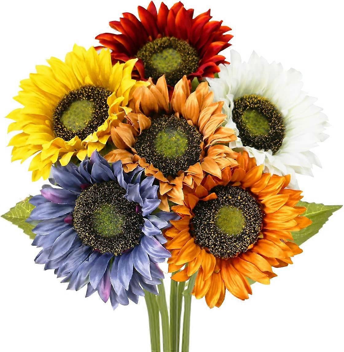 5PCS Artificial Sunflower Flowers Long Stem Large Silk Sunflowers Bridal Wedding Bouquet Fake Yellow Flower Arrangements for Outdoor