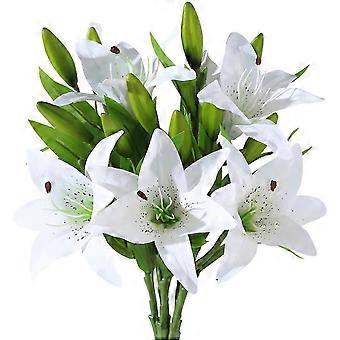 5Pcs Artificial Lily Flowers Real Contact Fake Lily Bouquet for Home Wedding Floral Decor White