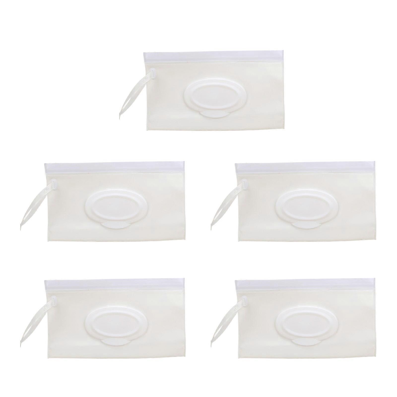 5PCS Portable Baby Wipes Dispenser Bag Leakproof Design Travel Friendly Organizer Dustproof for Parents White