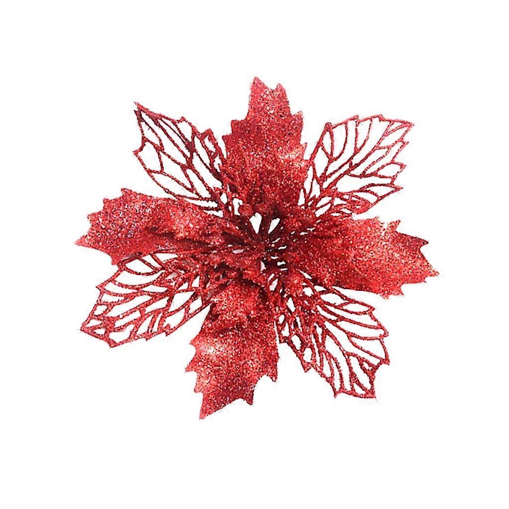5 Pieces 6.3’’ Glitter Christmas Flowers Blue Poinsettia Artificial Flower Christmas Tree Flowers Wreath Tree Ornaments