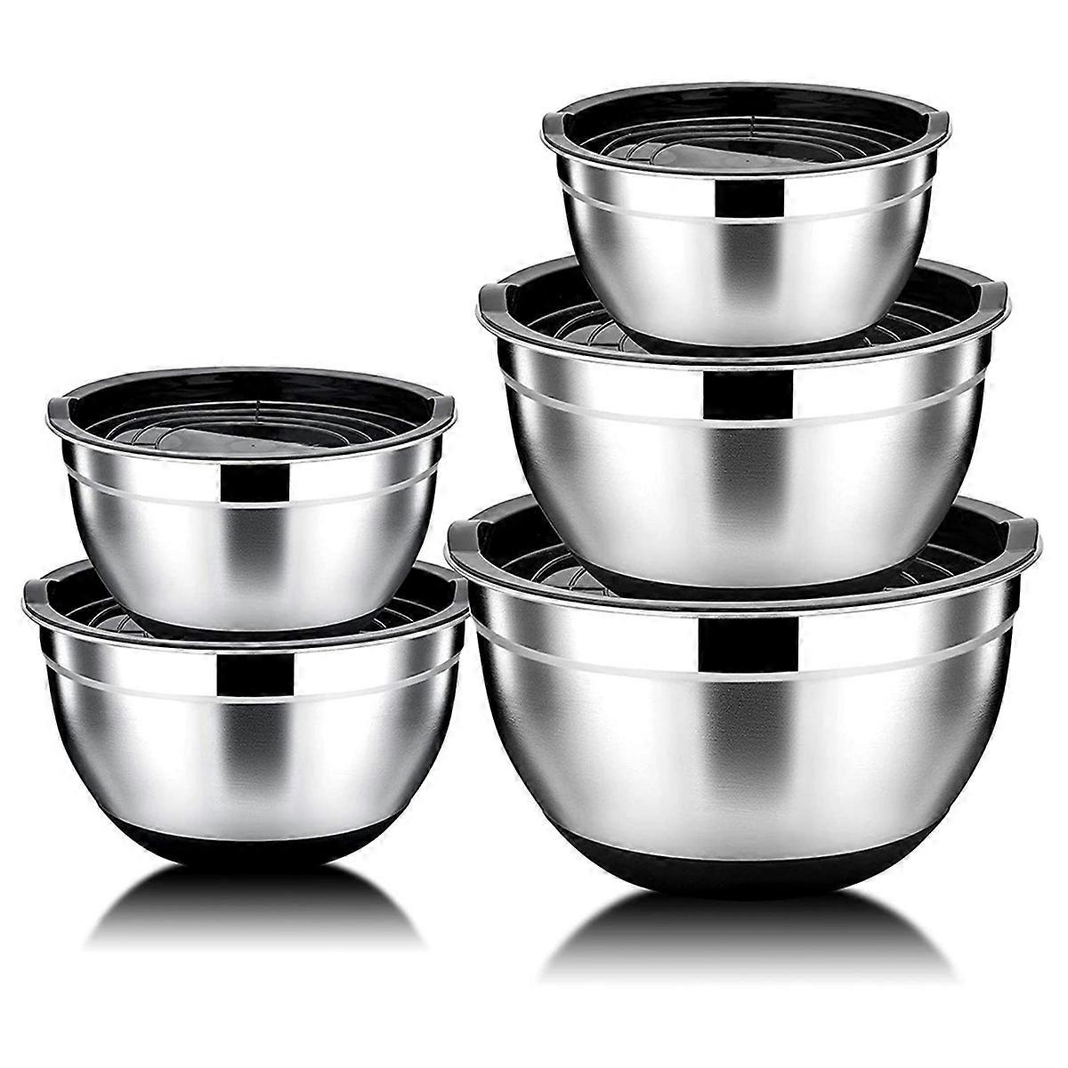 5 Pcs Mixing Bowl,Stainless Steel Salad Bowl with Airtight Lid&Non-Slip Base,Serving Bowl for Kitch
