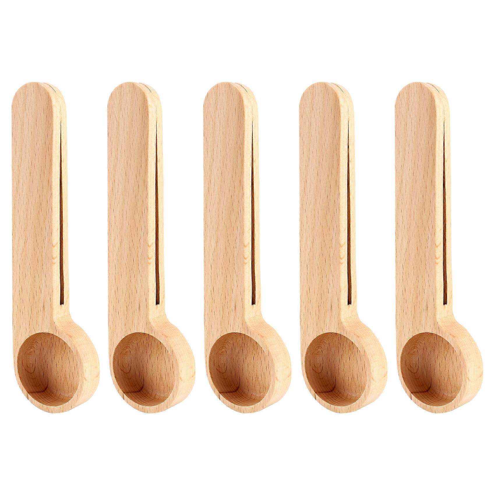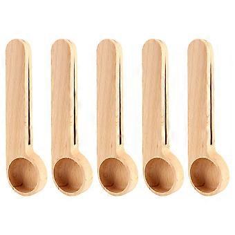 5 Pcs Wooden Coffee Scoop and Bag Measure Spoon 2-In-1 Bags Sealer Measuring Spoon for Beans,Espres
