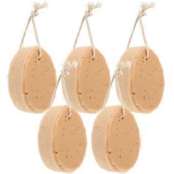 5 Pcs Bath Sponge Artificial Seaweed Cotton Honeycomb Sponge Biodegradable Kids Adults Shower Supplies with Hanging Rope (Brown)