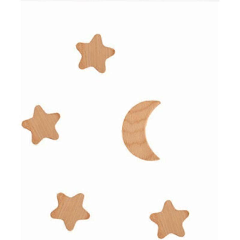 Wooden Wall Hooks – Set of 5 High-quality wooden construction: Durable and long-lasting, these hooks add a touch of rustic charm to any room. Includes 5 wooden hooks, 5 expansion tubes, 5 screws, and 5 adhesive stickers for versatile installation. Unique star and moon design: Adds a whimsical touch, perfect for a child's room or as a gift. Strong and sturdy: Environmentally friendly and built to last. Versatile use: Ideal for hanging clothes, hats, scarves, bags, towels, keys, and more. Perfect for entryways, bathrooms, bedrooms, kitchens, and more.