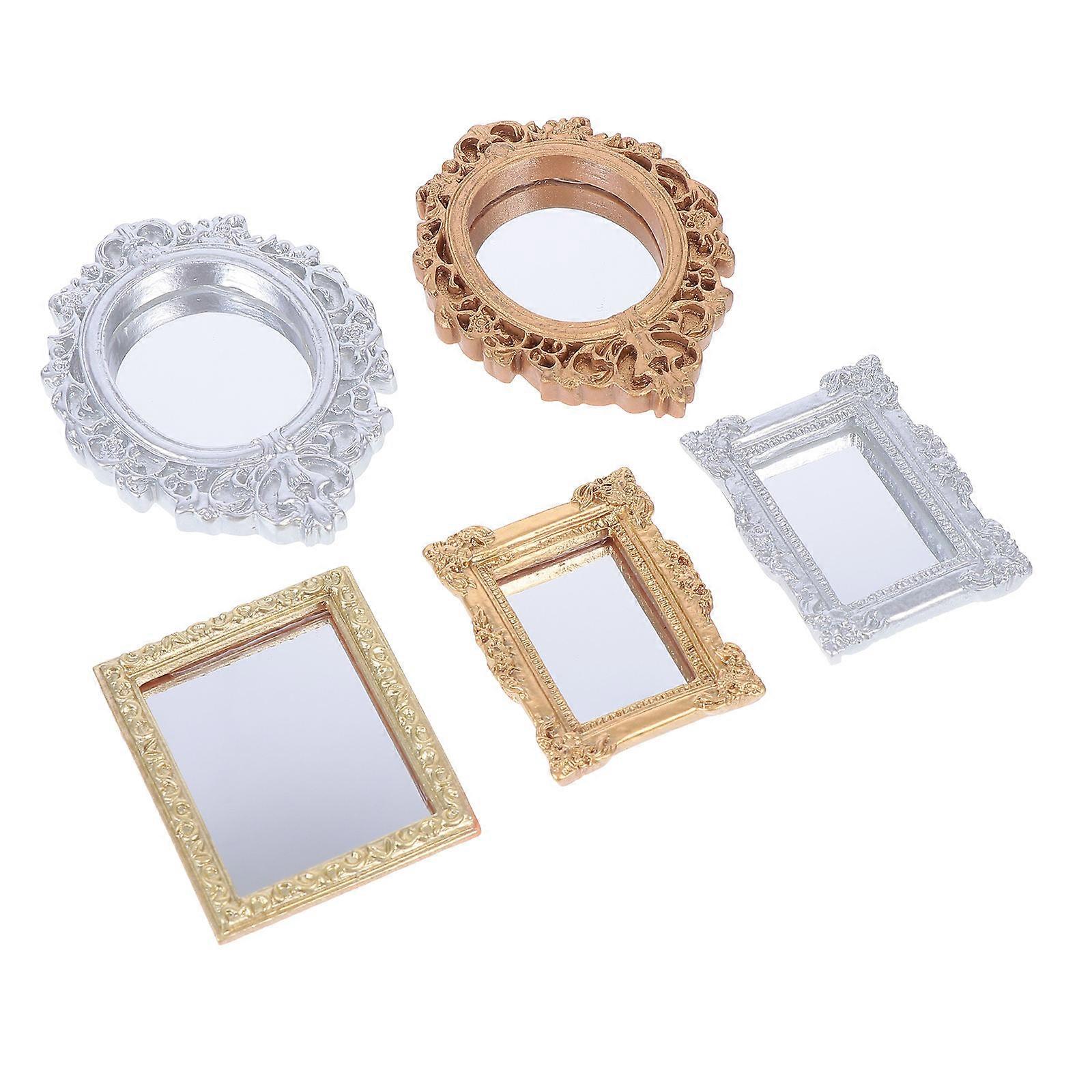 5pcs Mini Retro Mirror Props, Vintage Style Miniature Decorative Ornaments for Dollhouse Garden Outdoor Landscaping