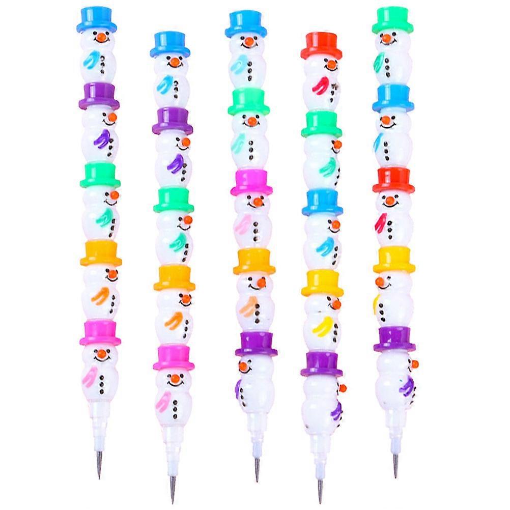 5pcs Stackable Snowman Pencils Cute Cartoon Design for Writing & Drawing Perfect for Christmas Party Favors & Stationery Supplies for Teens