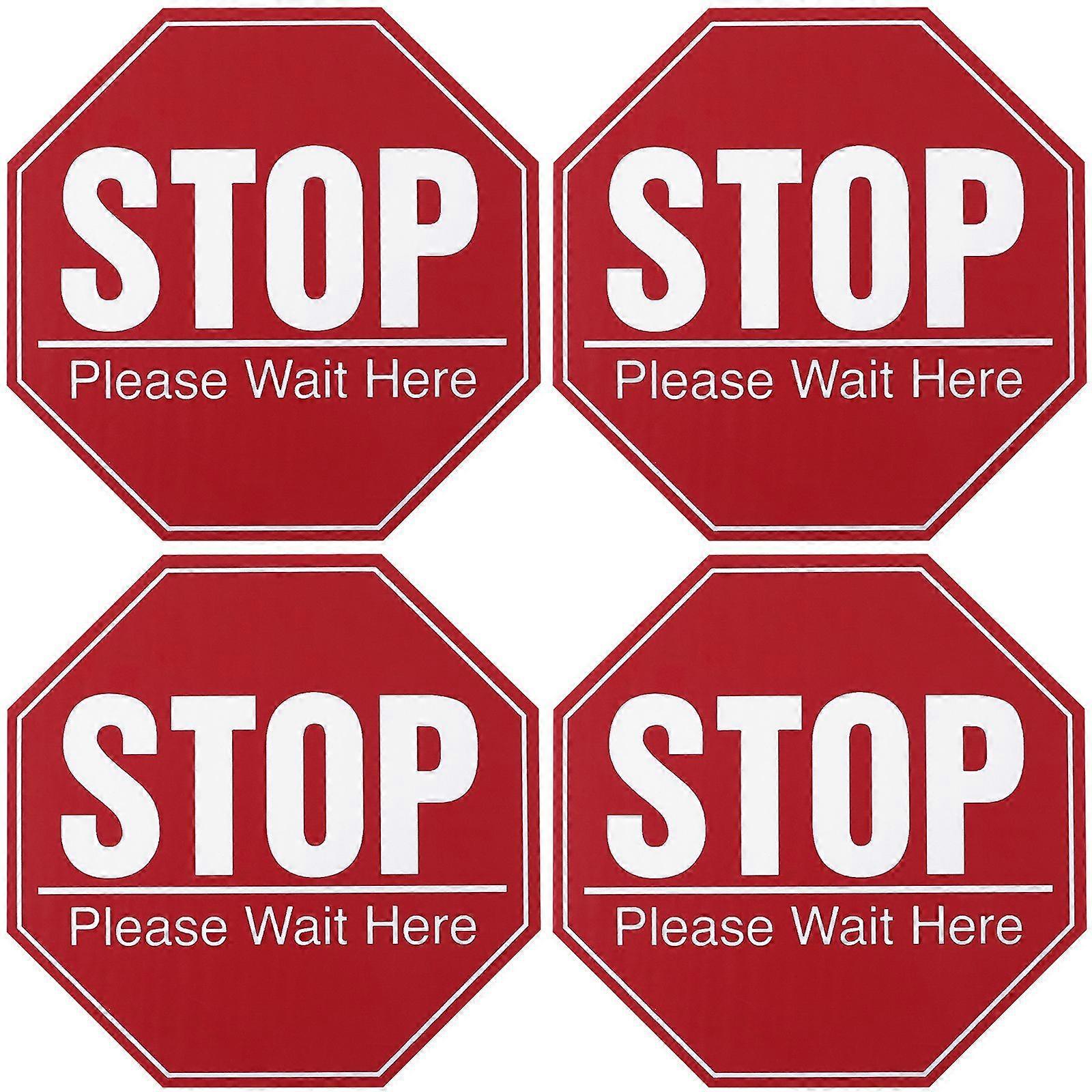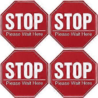5 Sheets Social Distancing Decals Stop Please Wait Here Signs Letter Printed PVC Stickers Public Safety Distance Awareness Signs