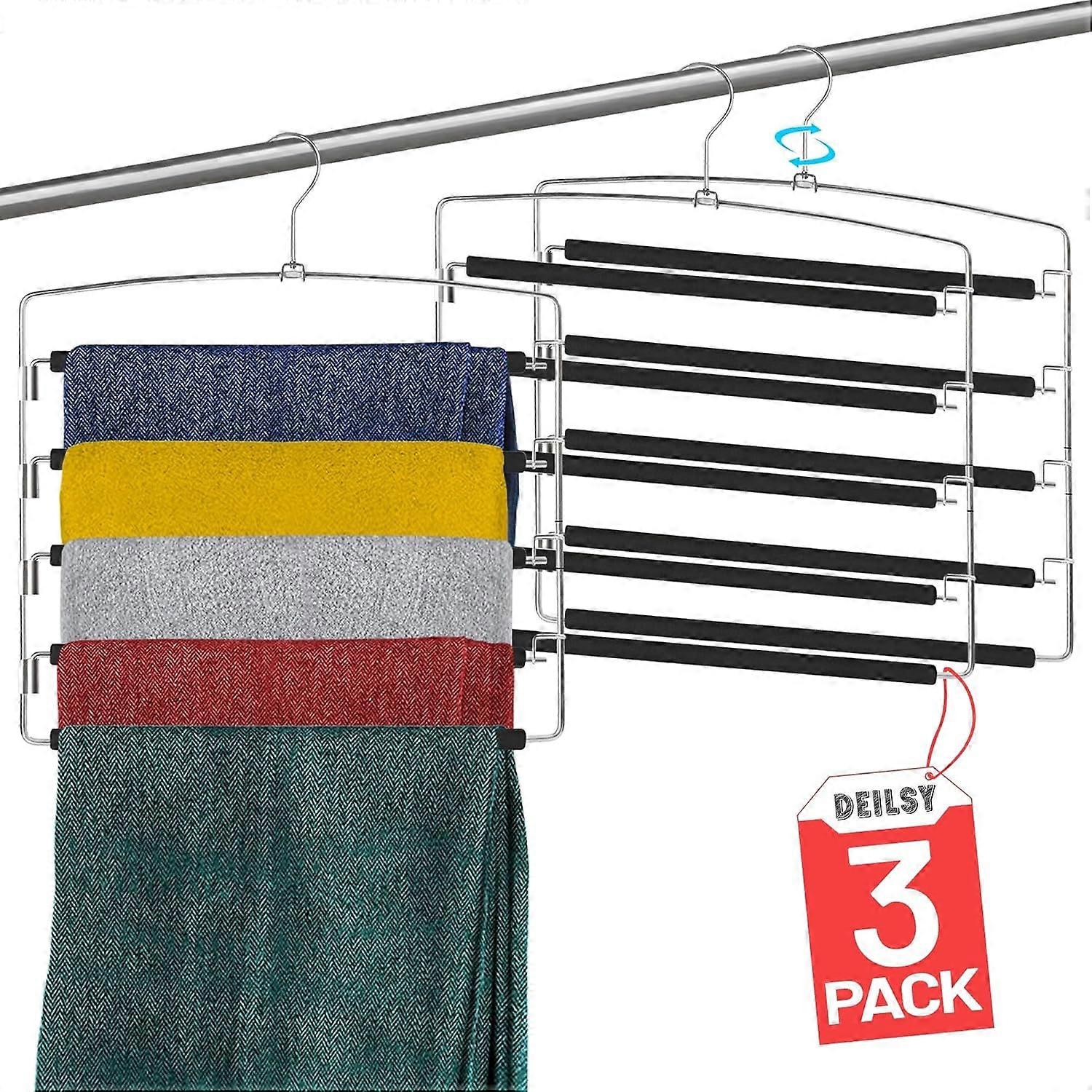5 Tier Pant Hangers Non Slip with Foam 3 Pk Space Saving Pant Hangers for Men and Women Jeans Pant Hangers for Closet Pants Multi Hangers Pants Racks