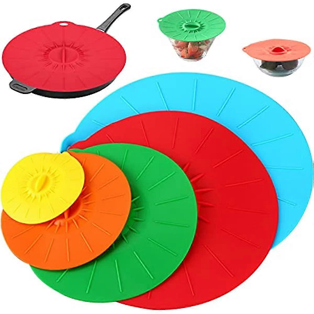 Silicone Suction Lids 5 Pieces Silicone Food Lids Silicone Cup Cover Reusable Anti-dust Cup Covers For Bowls Plate Pots Pans Oven And Refrigerator Pan