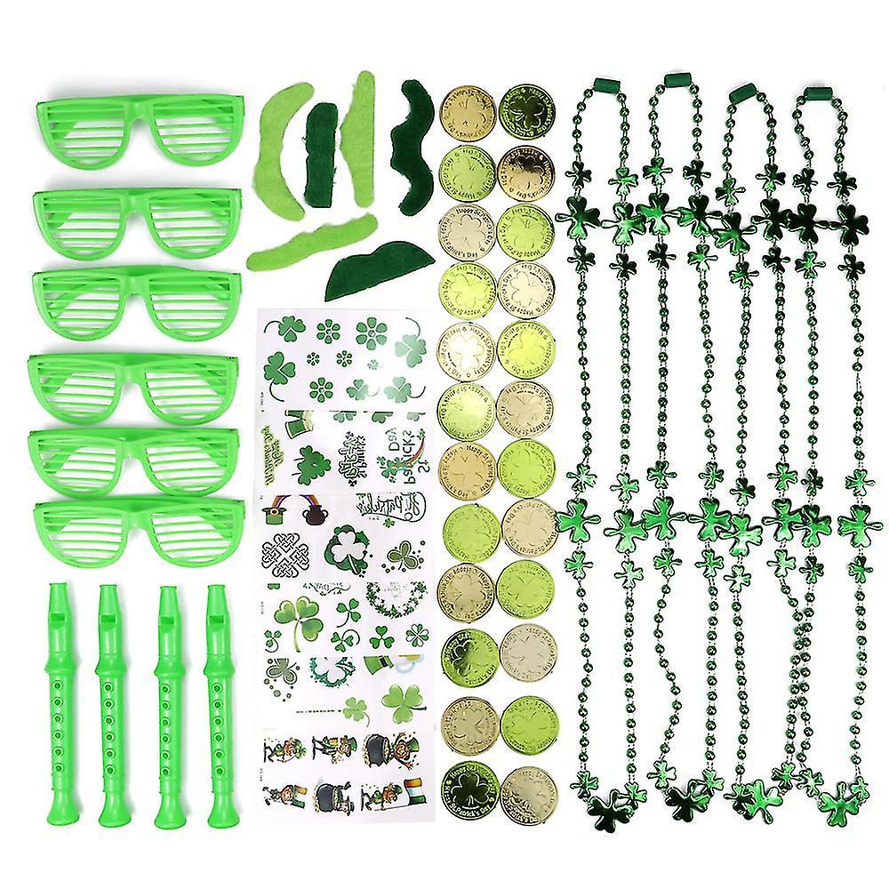 50 Pieces St. Patrick's Day Party Favor Set Include Glasses Beard Gold Coin Flute Tattoo Sticker Nec