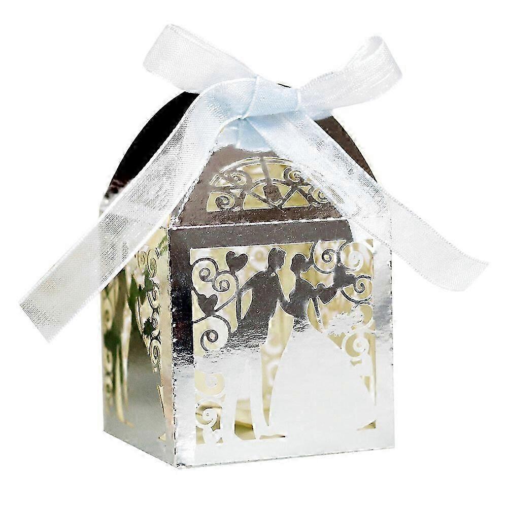 50 Pack Wedding Favor Boxes, Hollow Couple Pattern Wedding Party Favor Boxes with Ribbons, Small Paper Gift Boxes Lace Candy Boxes for Wedding Baby Sh