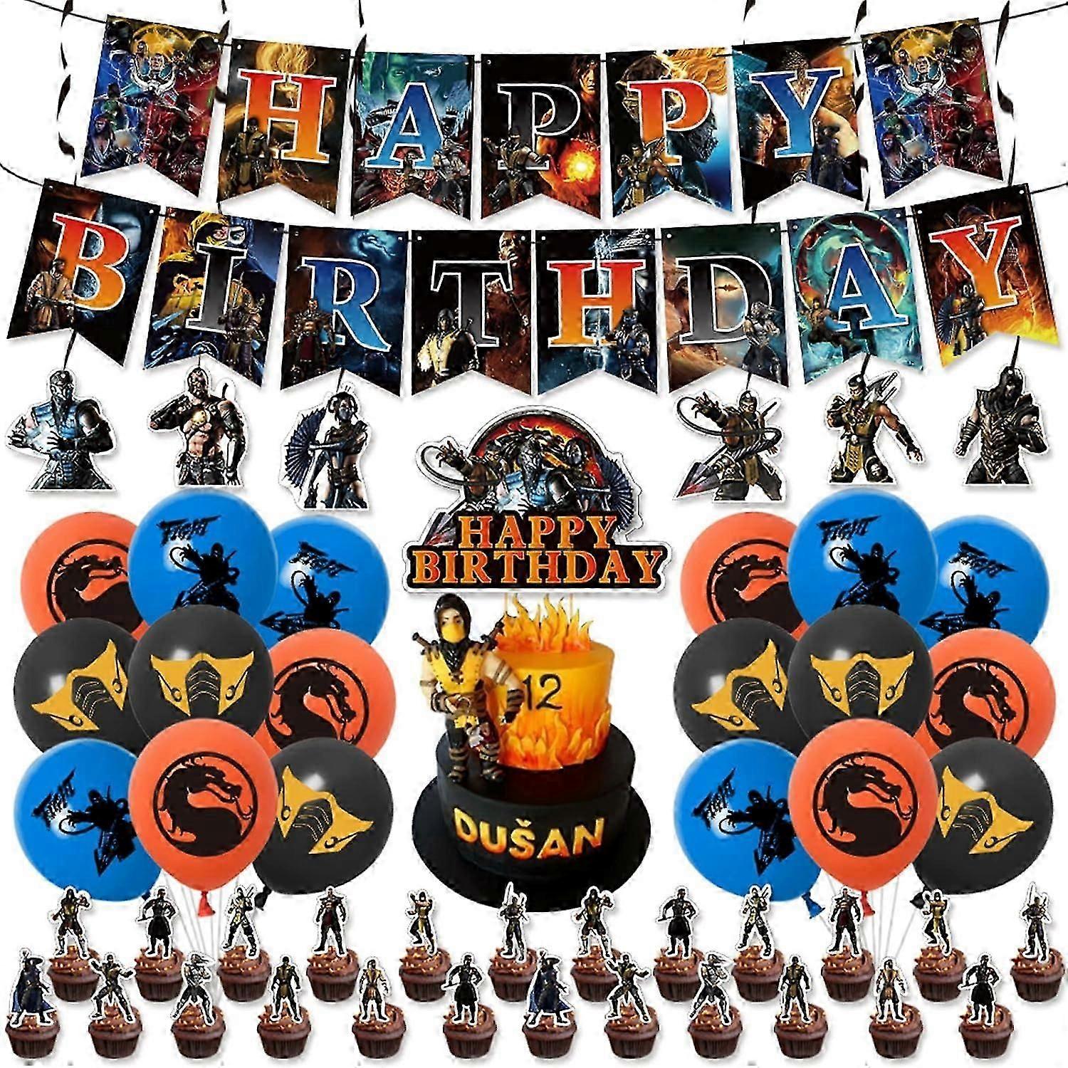 50Pcs Morrtal Kommbat Party Decorations Morrtal Kommbat Party Supplies Morrtal Kommbat Balloons Banner Cake Topper Cupcake Toppers Hanging Swirls For
