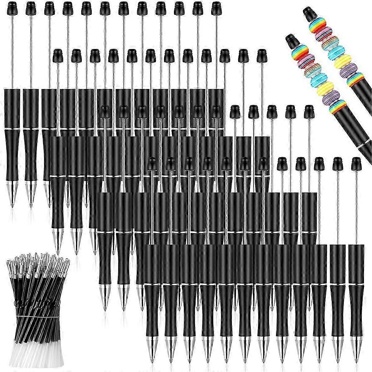 50Pcs Plastic Beadable Pen Bulk Ballpoint Pen with 50 Refills Black