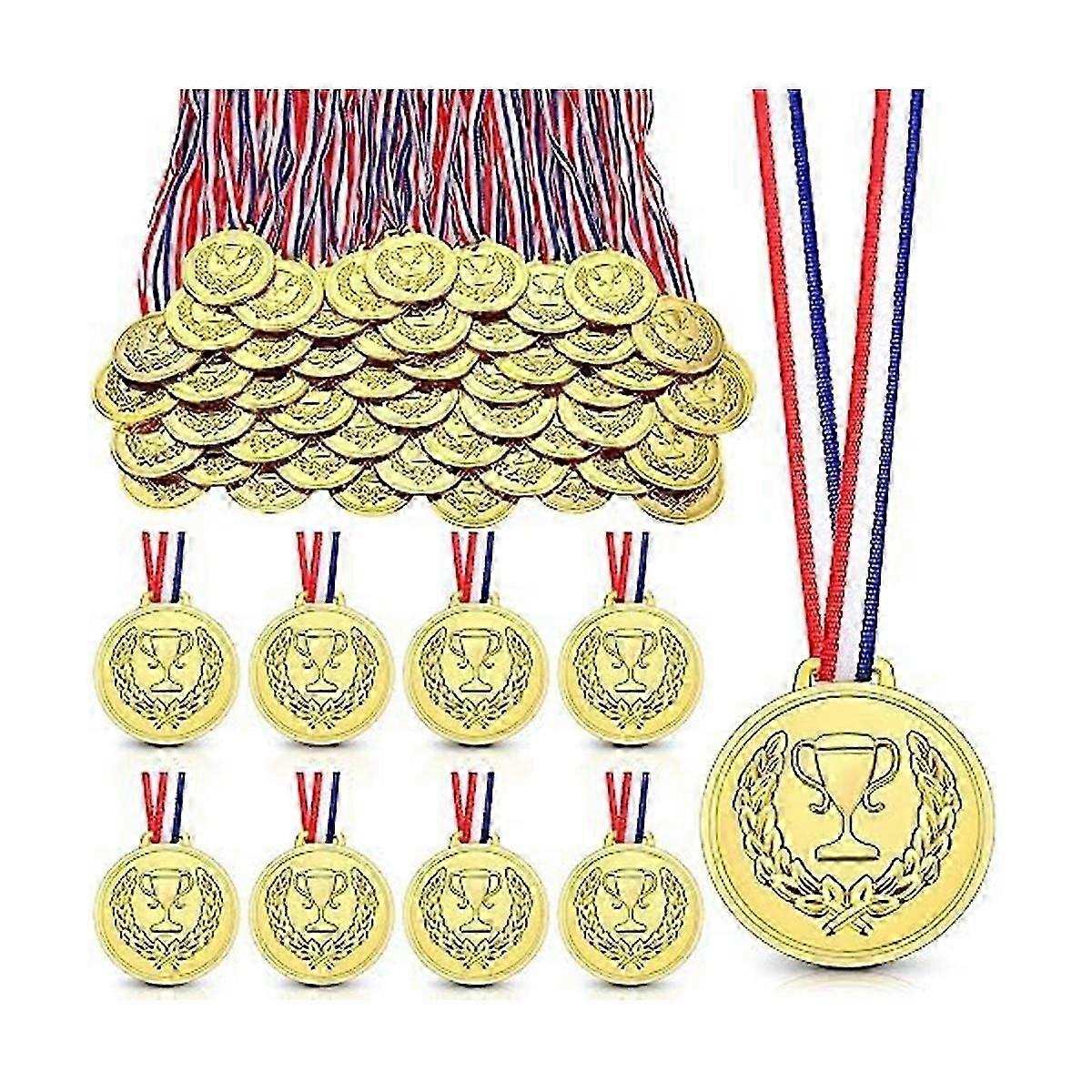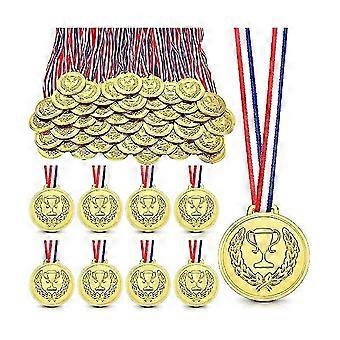 50 Pcs Plastic Gold Medal for Kids 2.36 Inch Trophy Winner Medals for Awards with Neck Ribbon Parti
