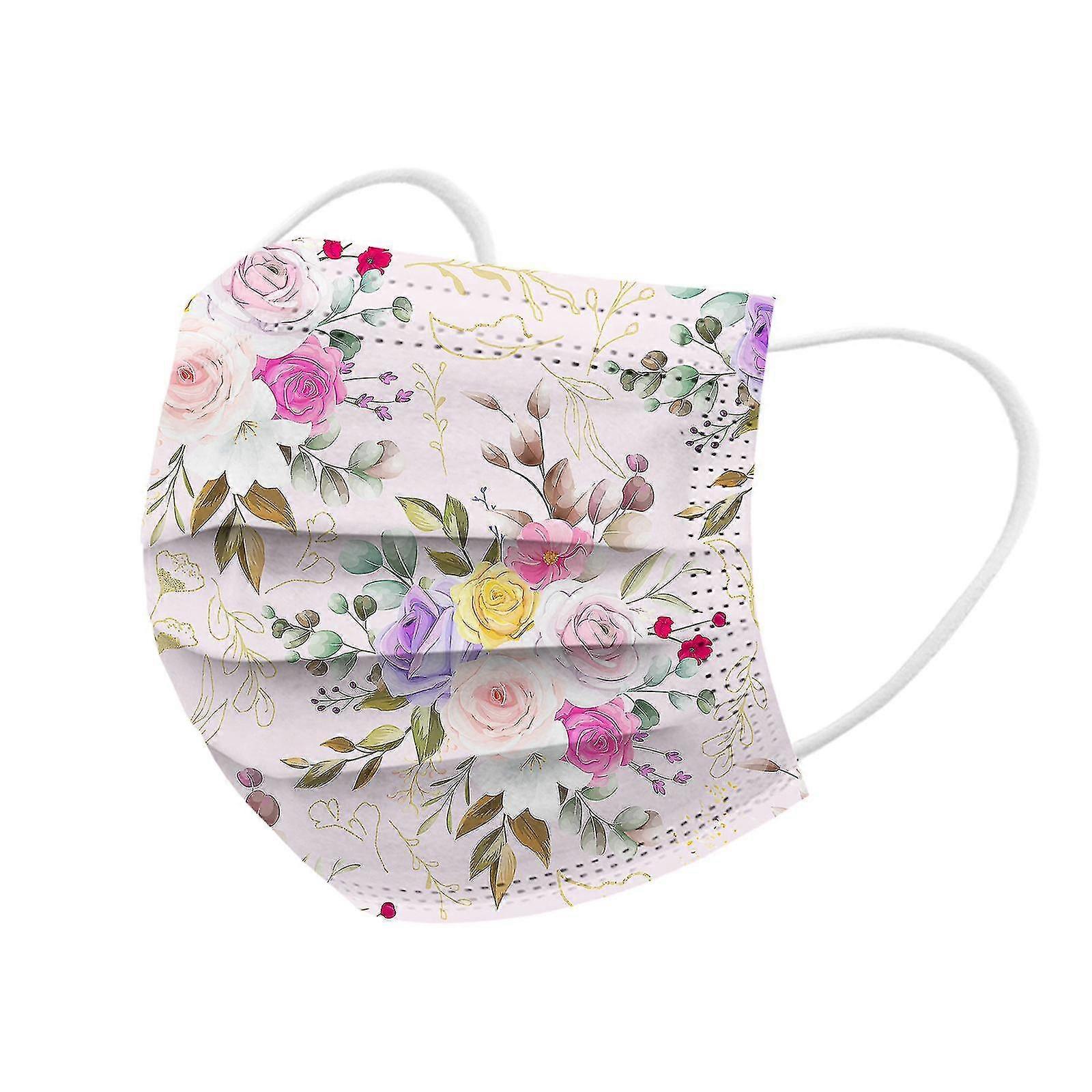 50 Pcs Adult Floral Printed Masks Mouth-muffle Disposable Flower Pattern Face Mask 3 Layer Ply Meltblown Cloth Filter Facemask--color 24 10pcs