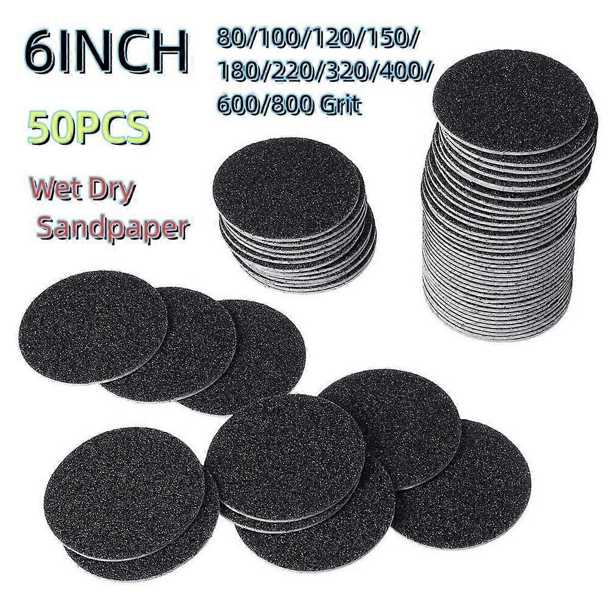 50 Pack 6inch Hook Loop Sanding Discs 80-800 Grit for Drill Wet Dry Sandpaper