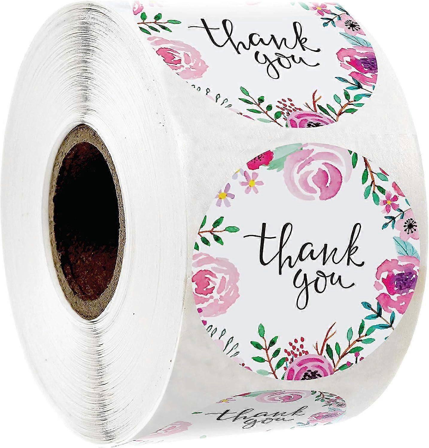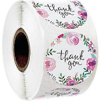500 Thank You Stickers 1" Inch Size In Roll | Pink Water Color Flower Design For Birthdays, Weddings, Giveaways, Bridal Showers (1roll) .