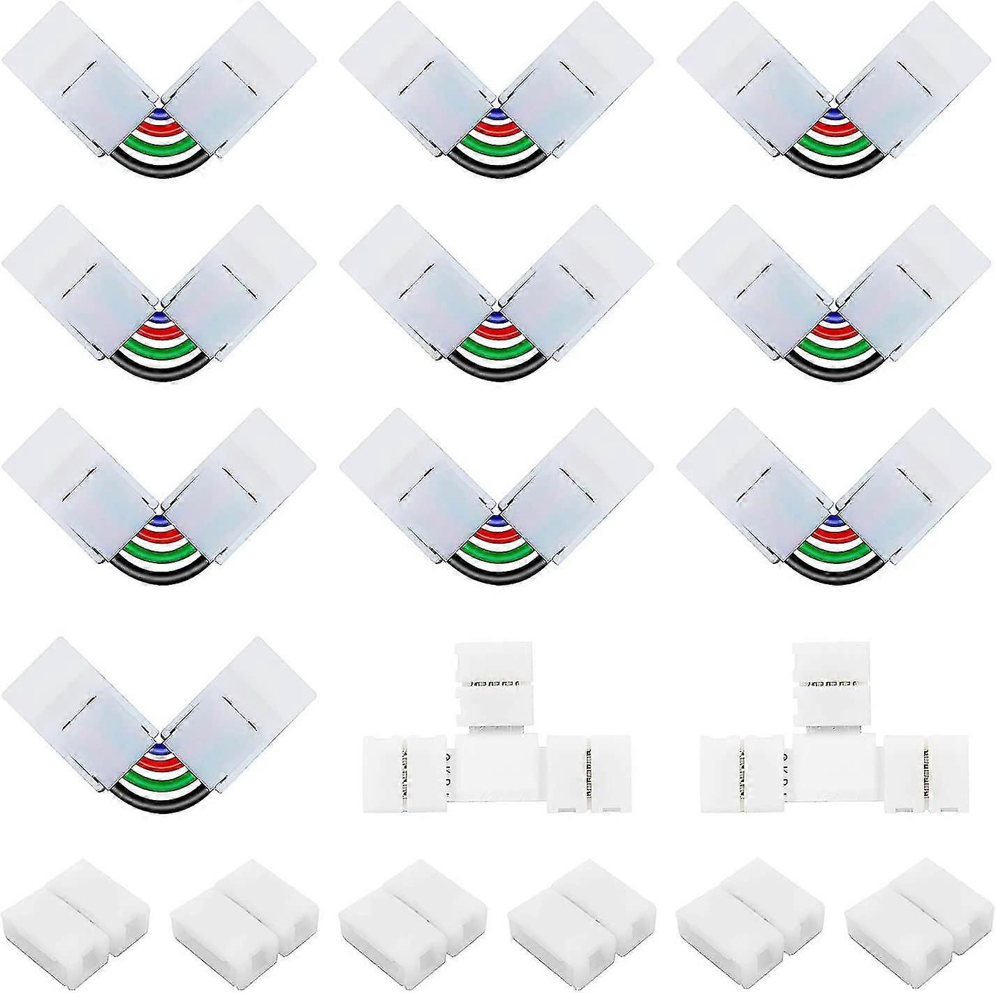 5050 4 Pin 10mm LED Strip Connector Kit Included 6 x 10mm Gapless Connectors,10x4 Pin Adjustable Angle L-Shape Connectors,2 x T-Shape Connectors for S