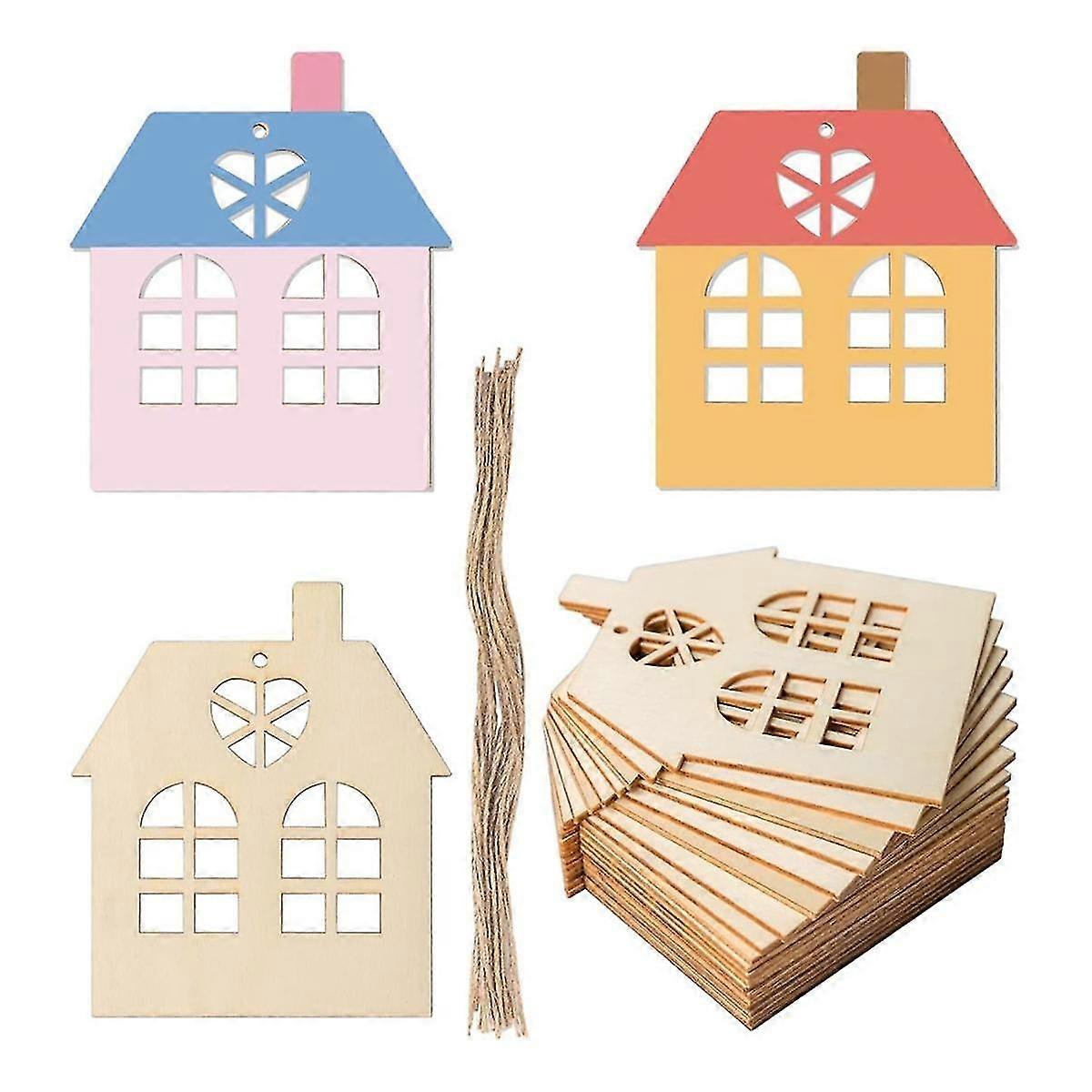 50pcs Unfinished House Shape Wooden Tag Hanging Wood Cutout Blank Wood Slices Wooden Gift Tags With Twine