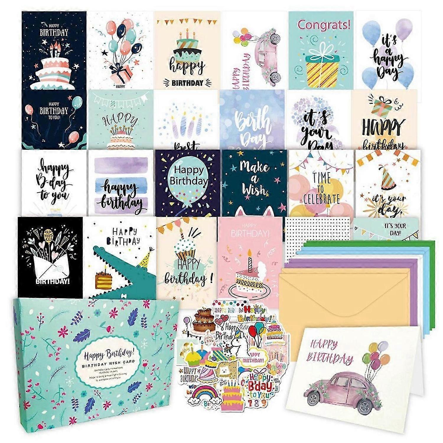 50Pcs Uniqe Birthday Cards with Envelopes and Stickers,Greeting Cards Birthday Cards Pack, Birthday