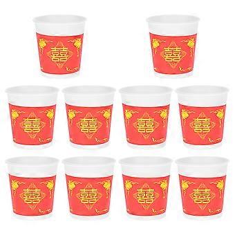 50Pcs Chinese Style Paper Cups Disposable Wedding Serve Cups Party Supplies Random Style