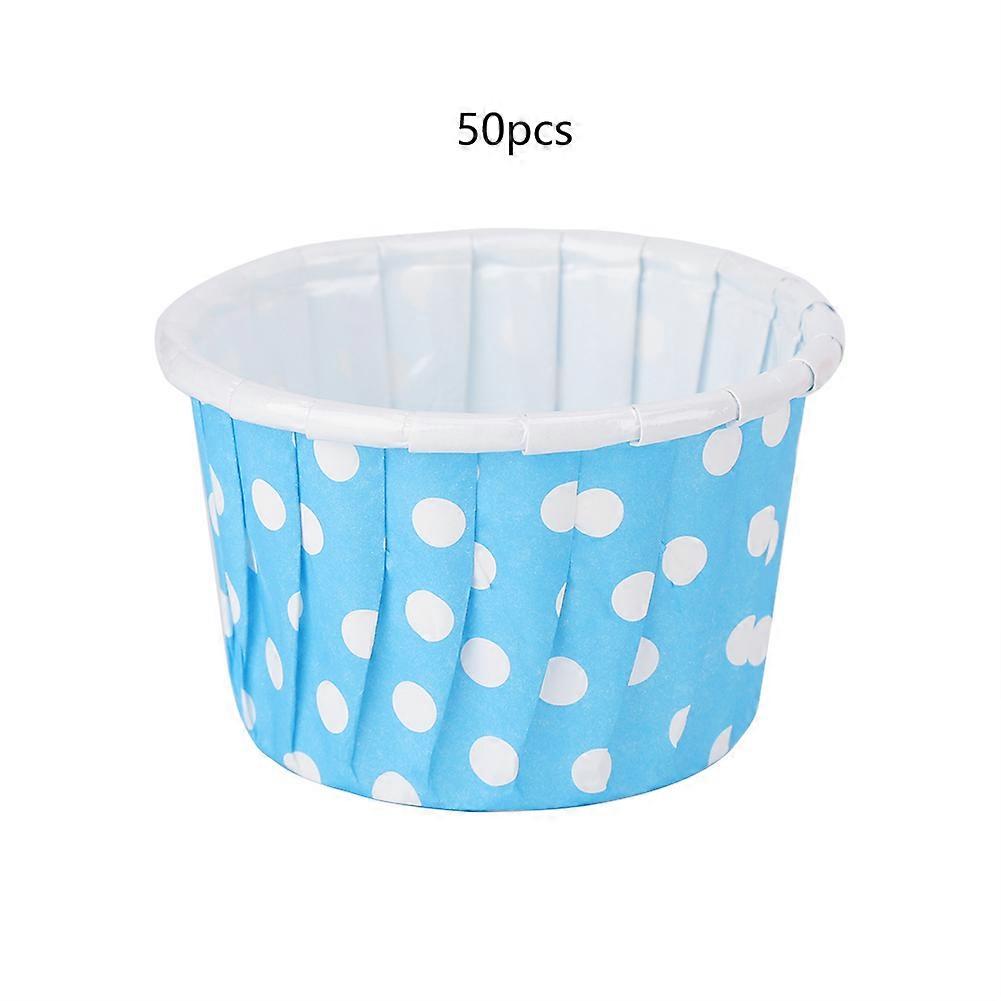 50Pcs Mini Cupcake Liners Paper, Round Dot Cake Baking Cups for Home Party Wedding, Blue