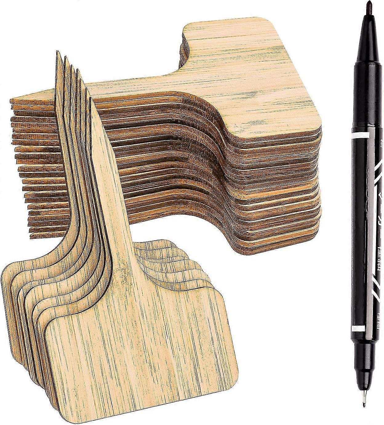 50pcs Bamboo Plant Tags With Marker Pen, Plant Tags Wooden T-type Garden Markers For Seeds Pot Herbs