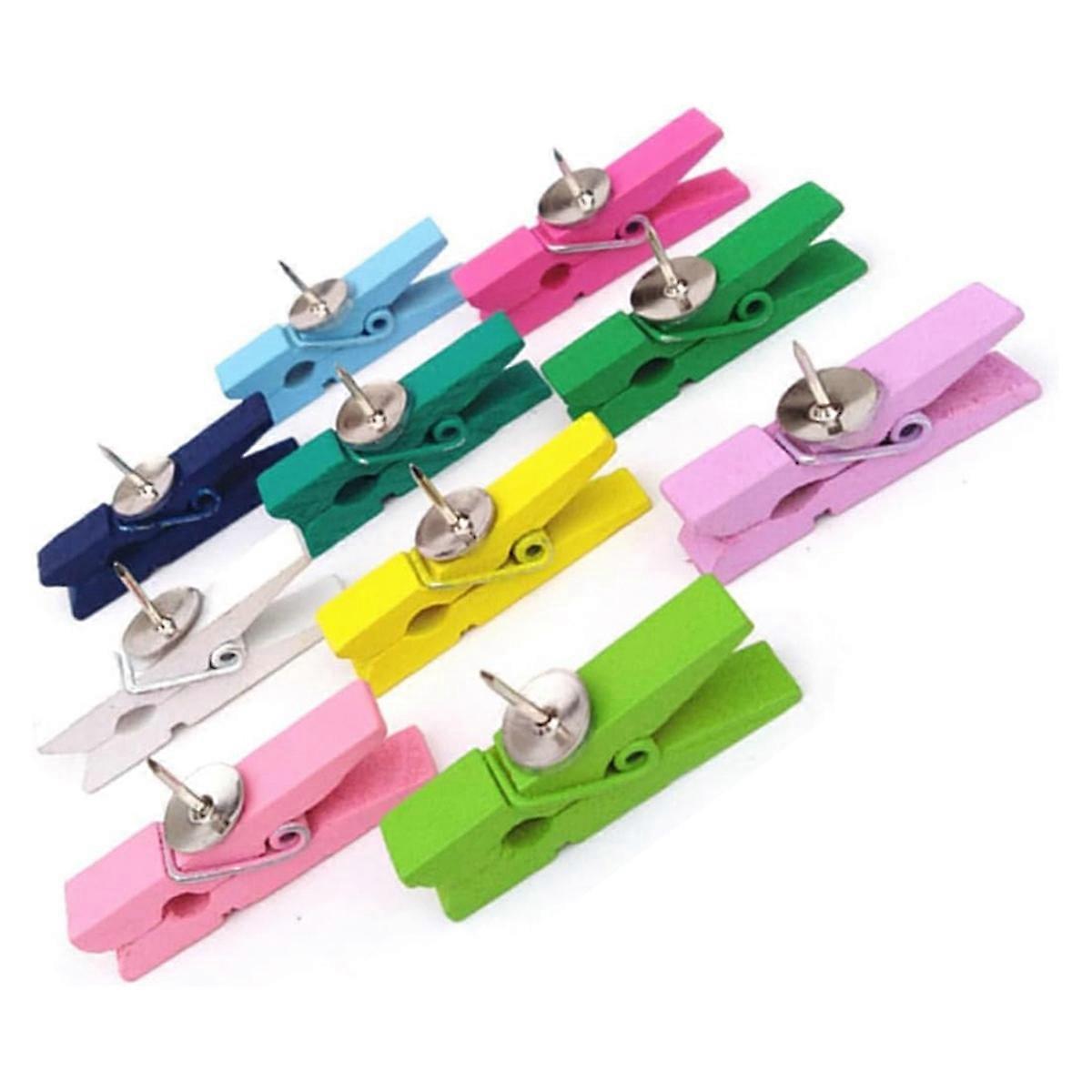 50pcs Wooden Pushpins and Thumbtacks Decorative Craft Paper Clips for Notes Photos and Cork Boards