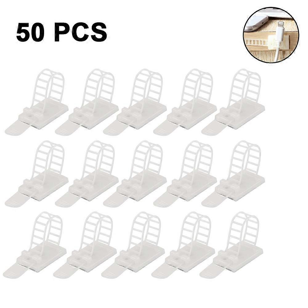 50Pcs Adjustable Self-Adhesive Cable Ties Cord Clamp Extra Screw & Hole Wire Holder, For Home And Office Desk Cord Management