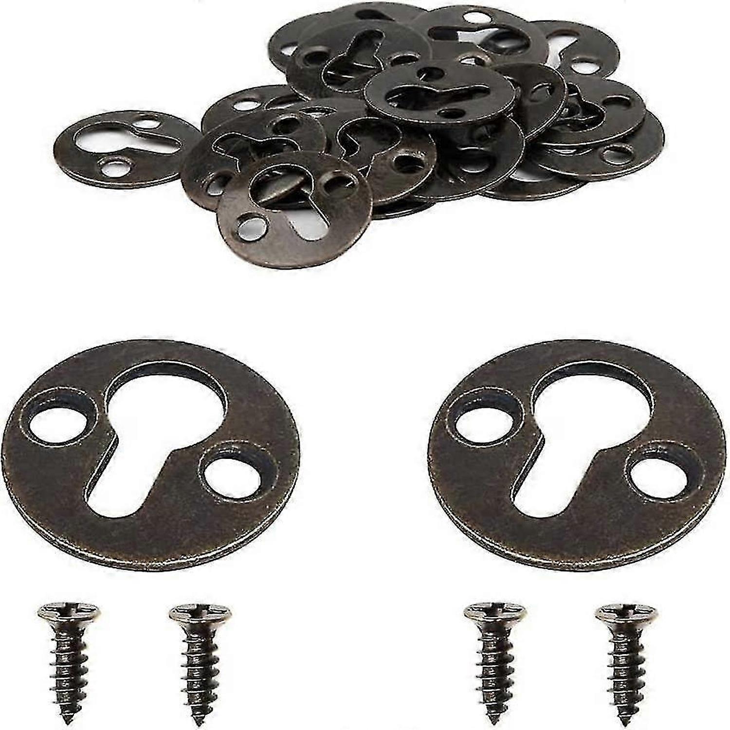 50pcs Round 25mm / 1-inch Mortise Type Metal Keyhole Hangers Shelf Brackets Picture Frame Hanging Plate (Antique Bronze)